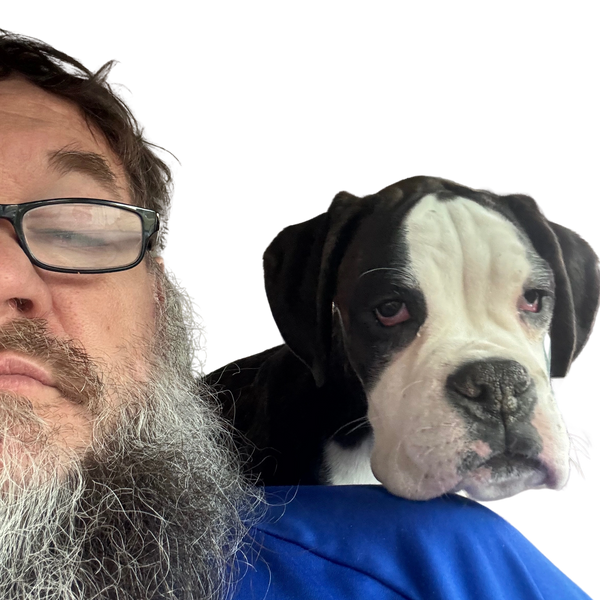 This male puppy is a very dark, flashy brindle with a big head. He is a big boy who is very chill and laidback with a sweet and playful personality